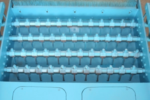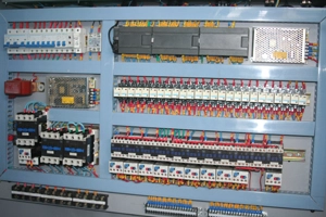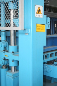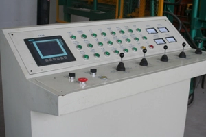 PLC og den berøringsfølsomme skærm er produkter fra Siemens, Tyskland. Et elektronisk styreskab styrer både blokfremstillingsmaskinen og stableren, hvilket gør det nemmere at betjene og udføre fejldiagnose.