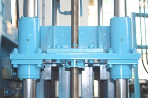 Det synkrone afformningssystem, som drives af tandhjul og kæder gør, at de to afformningscylindre arbejder synkront, og formene bevæger sig stabilt