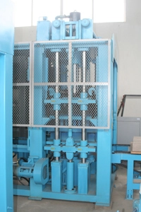 Der er træcylindre på den øverste form. Den midterste sikrer løftehastigheden og de to andre på begge sider sikrer trykket af den øverste form.
